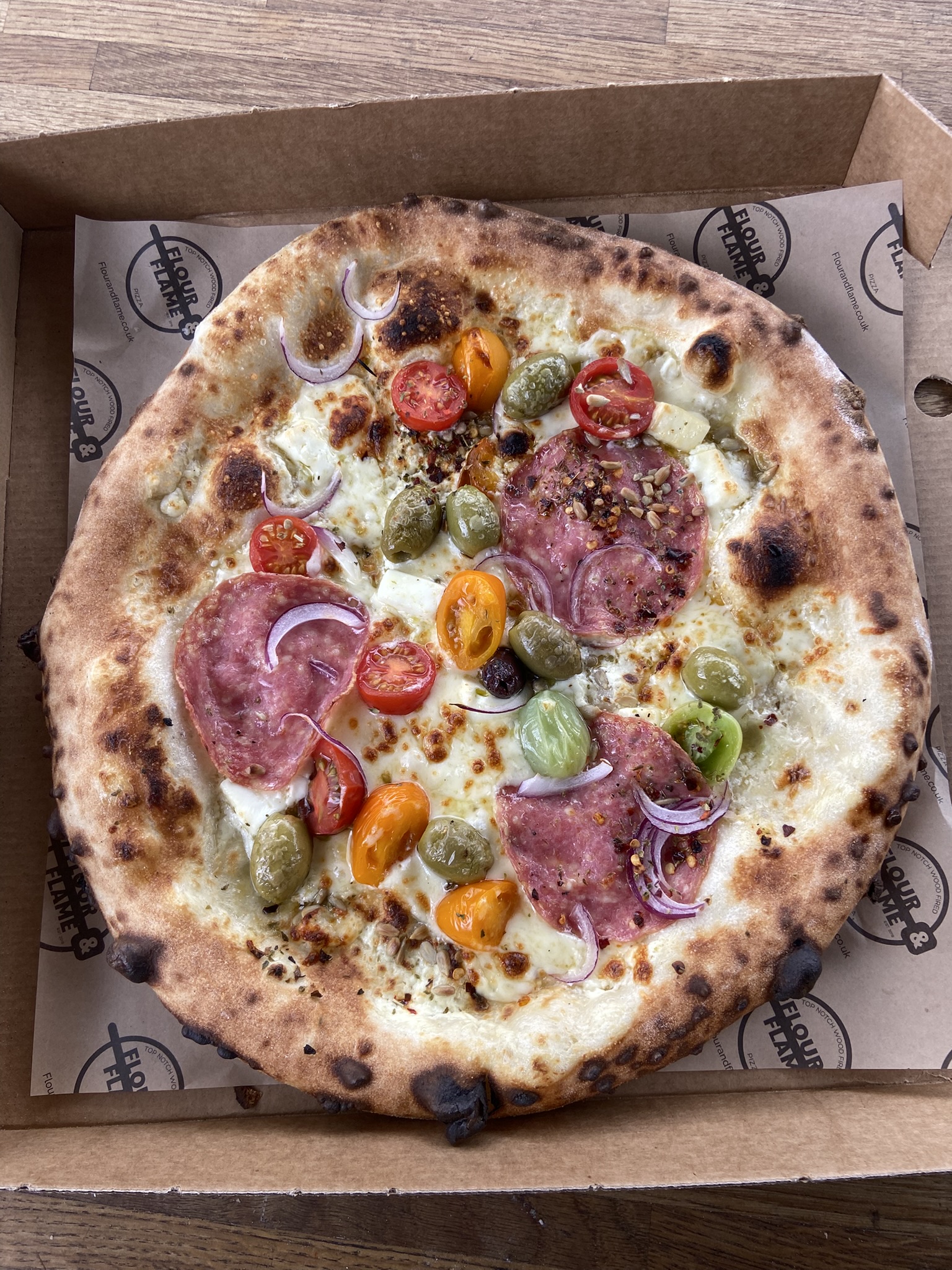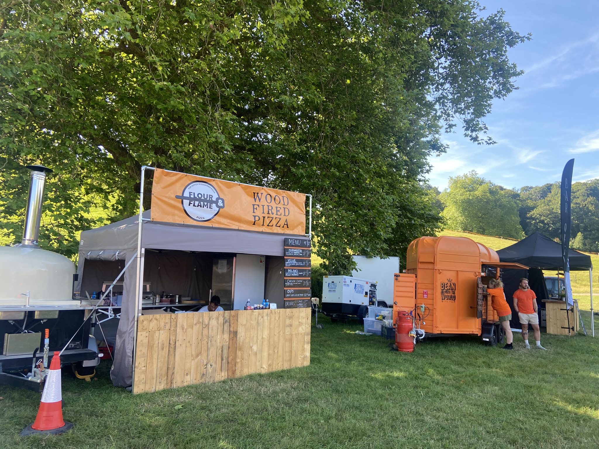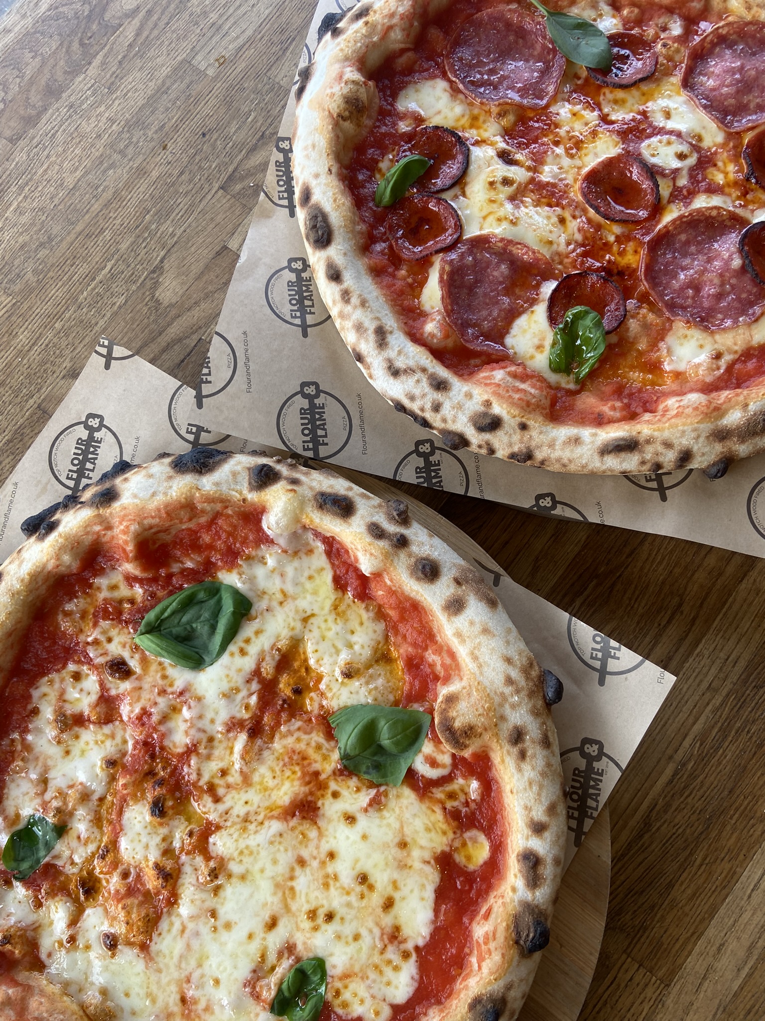 We are Flour and Flame from Exeter and we make our wood fired pizza across the south west at street food events, weddings, parties, corporate events, festivals and anywhere people need proper pizza. To order at one of our street food locations go our Ordering page. To book us for a wedding or private event go to contact us, say hello and start a conversation.