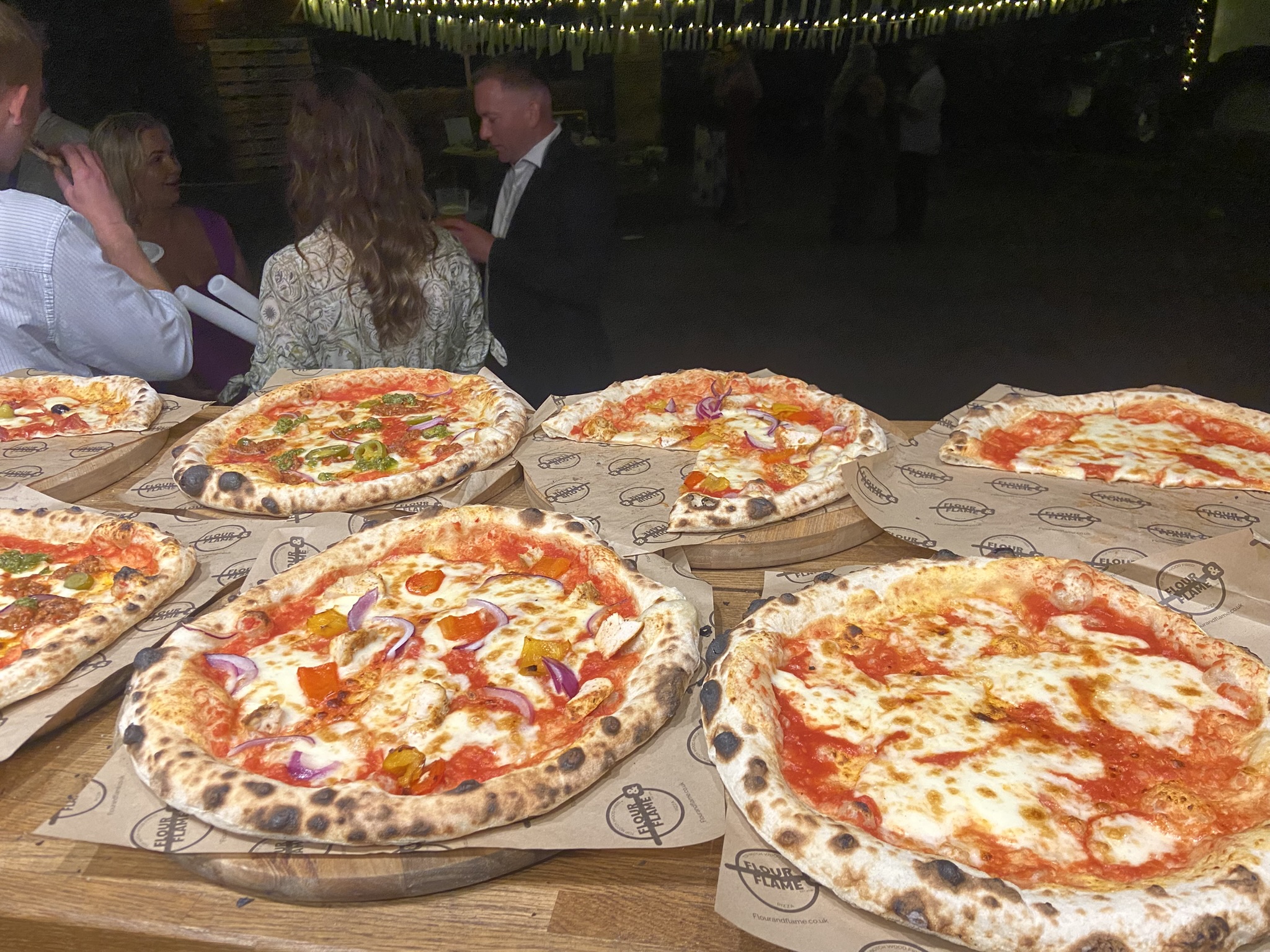 “I wanted to say a HUGE thank you for the pizzas on Saturday night, our guests have been messaging me all day yesterday saying how amazing they were. Russ and I managed to take one of each home after the party and they were absolutely fantastic. We will definitely recommend you, truly delicious.”
